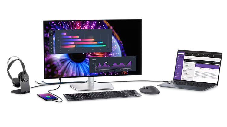 Alles über 1 Kabel: Thunderbolt 4 überträgt Daten und Videosignale mit Geschwindigkeiten von bis zu 40 Gbit/s und liefert bis zu 90 W Leistung für Ihren PC. Stabile Verbindung: Schnelles Ethernet bietet Ihnen Geschwindigkeiten von bis zu 2,5 GbE. | Höchste Produktivität: Wenn Sie zwei PC-Quellen an den Monitor anschließen, schaltet die Auto-KVM-Funktion die Steuerung nahtlos auf den zweiten angeschlossenen PC um. Mit KVM-Funktionen (Tastatur, Video und Maus) steuern Sie beide PCs über eine einzige Tastatur und Maus. Mehr auf einem Bildschirm: Zeigen Sie Inhalte aus zwei PC-Quellen mit Picture-in-Picture (PiP) und Picture-by-Picture (PbP) an. | Mehr Konnektivität: Nutzen Sie mehr Verbindungen – über DisplayPort 1.4, HDMI (HDCP 1.4, unterstützt bis zu QHD mit 2.560 x 1.440, 120 Hz, TMDS, VRR gemäß HDMI 2.1-Spezifikation), USB-A- und USB-C-Anschlüsse, die Geschwindigkeiten von bis zu 10 Gbit/s bieten. | Einfache Verbindung: Schließen Sie Zubehör und Geräte einfach über einen schnell zugänglichen USB-A- sowie einen USB-C-Anschluss mit einer Stromversorgung von bis zu 15 W an. |
