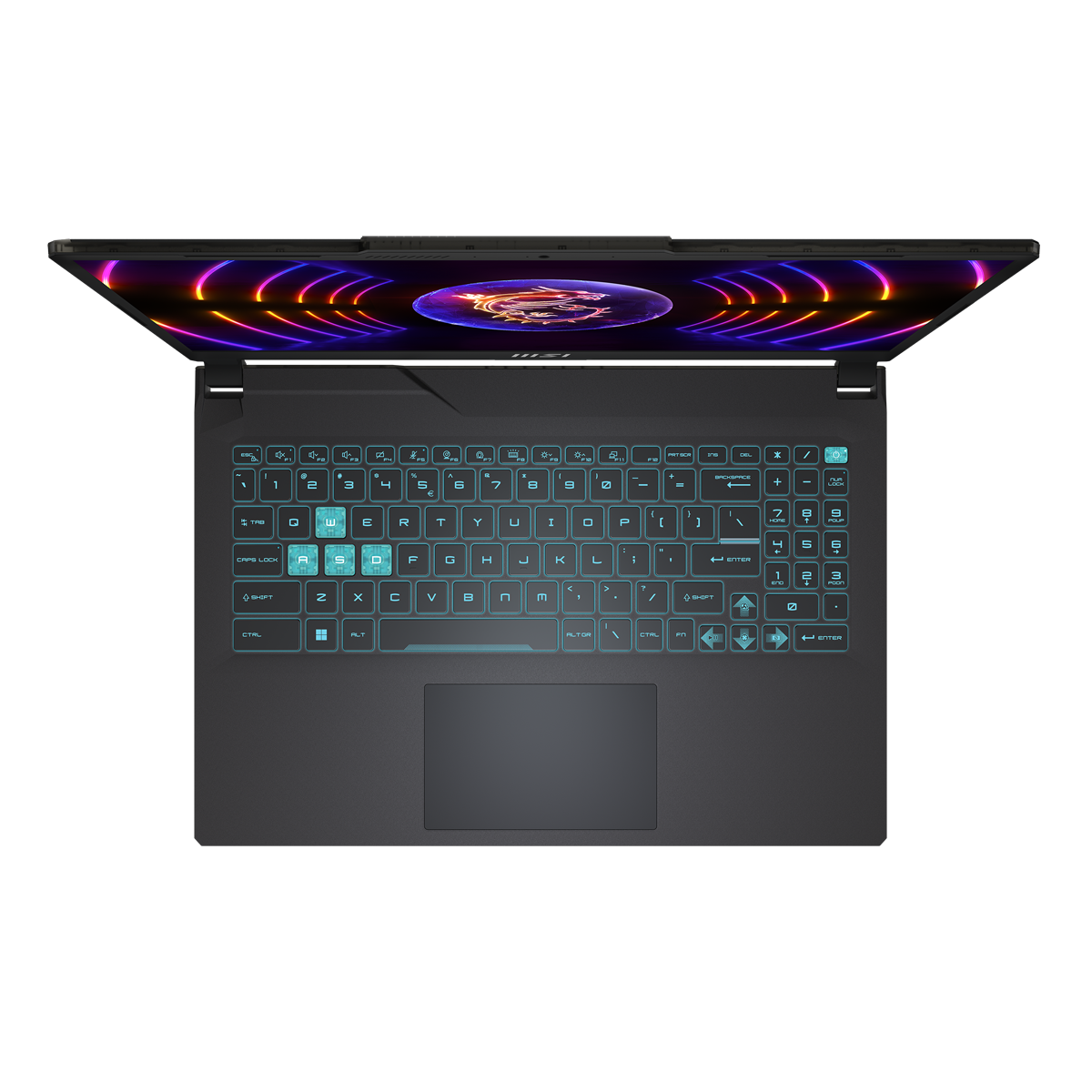 Die blau beleuchtete Gaming-Tastatur überzeugt mit ihren ergonomischen Eigenschaften und extra Ziffernblock beim Spielen und Arbeiten. Das große Precision Touchpad sorgt ebenso für Komfort bei der Steuerung.