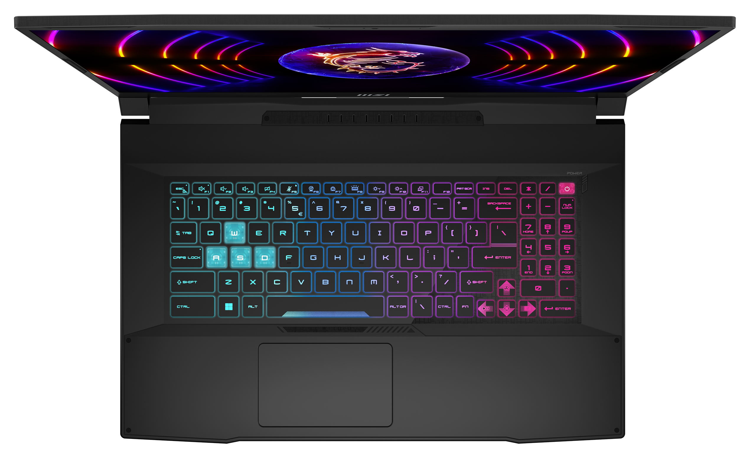 Die komfortable und robuste Tastatur verwöhnt mit angenehmem Druckpunkt, sieht stark aus mit ihrer roten Beleuchtung, bietet extra Gaming-Hot-Keys und überzeugt beim Arbeiten mit dem integrierten extra Nummernblock.